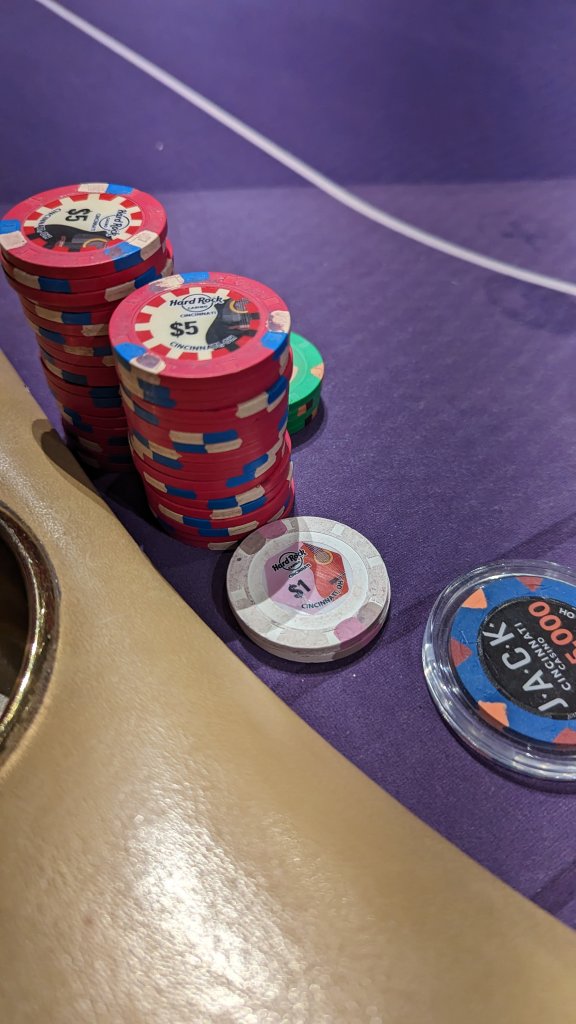 On a work trip to Cincinnati (well KY technically, right next to the airport) so I had to stop in for some poker at the  Horseshoe Jack Hard Rock (no indoor smoking, it's the best!). These $5 chips are bangers.