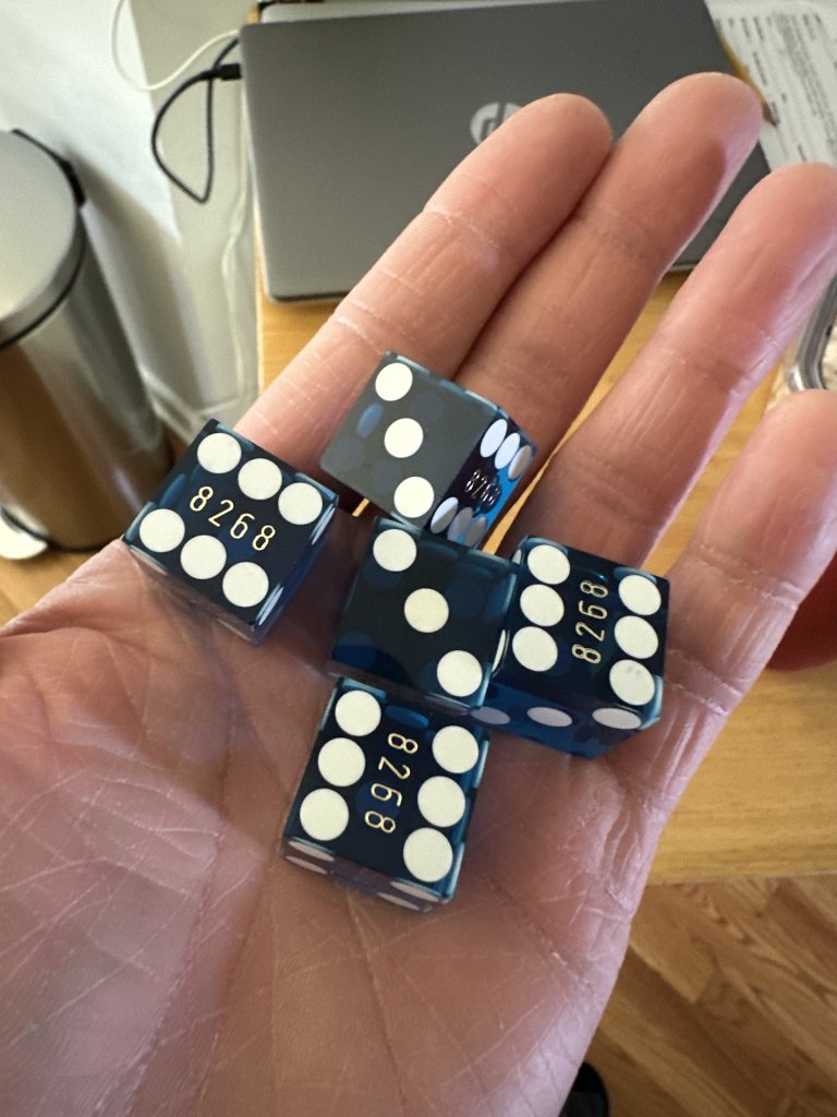 Good night for me. Only lost $21 on craps, then was in for $300 out for $980 + ~$300 in harvested chips.