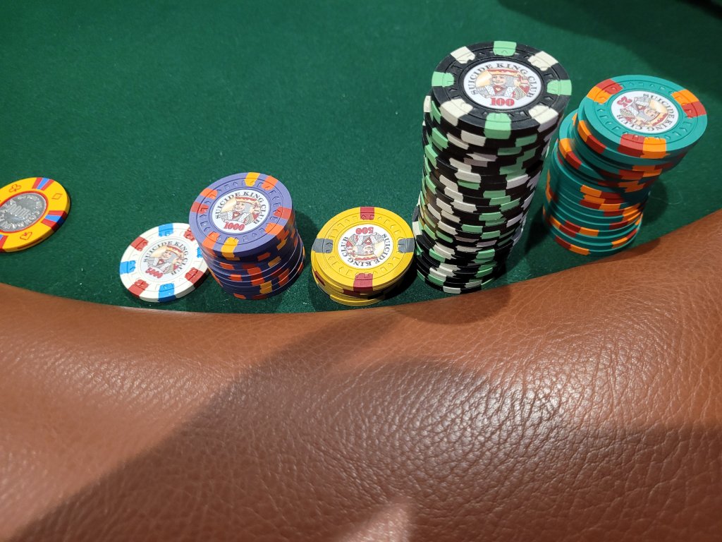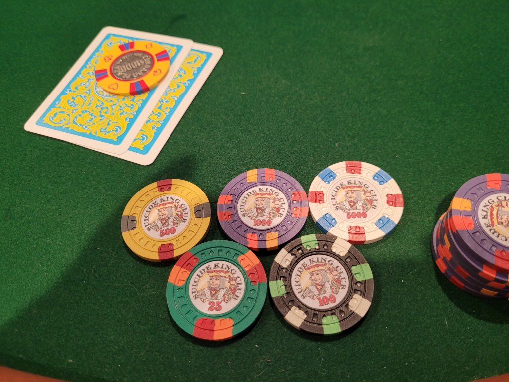 Probably the last time we’ll see my ASM cash game set in play. Had it made many moons ago but our game has long outgrown 10c games. My mixed RHC set should be completed in time for the next one!