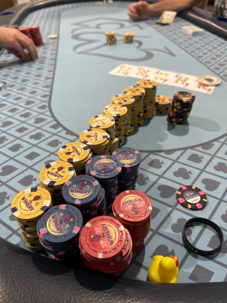 Local 1/2 game last night. In for $400 out for $445, including a high hand bonus for quad 7s.