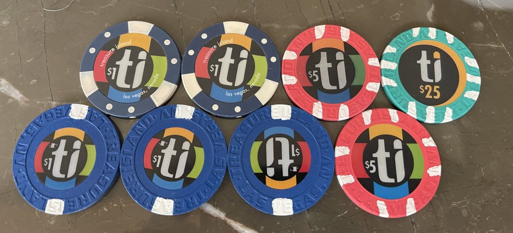Nonetheless, I think I have some new favorite live casino chips. The pit boss and lady in the cage were so nice when I asked for them, they went back and got me brand new, mint $1s and a $5. These have never seen the felt! Very nice people.