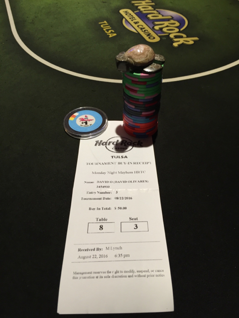 Out! A bit of a donk fest but I had fun. I was thinking about playing cash but unfortunately my flight to Wichita was very late. Arrived at my hotel at 1:30 am and had two meetings starting at 7:30 am and then drove to Tulsa. Figured it was ok to play the tourney although the brain is not 100%. Figured it using a good idea to play cash. The bird and turtle did their part but they did not have a good partner tonight.Playing a little $50 + $10 Tournament at the Hard Rock Tulsa. Fear the turtle and bird. View attachment 53411