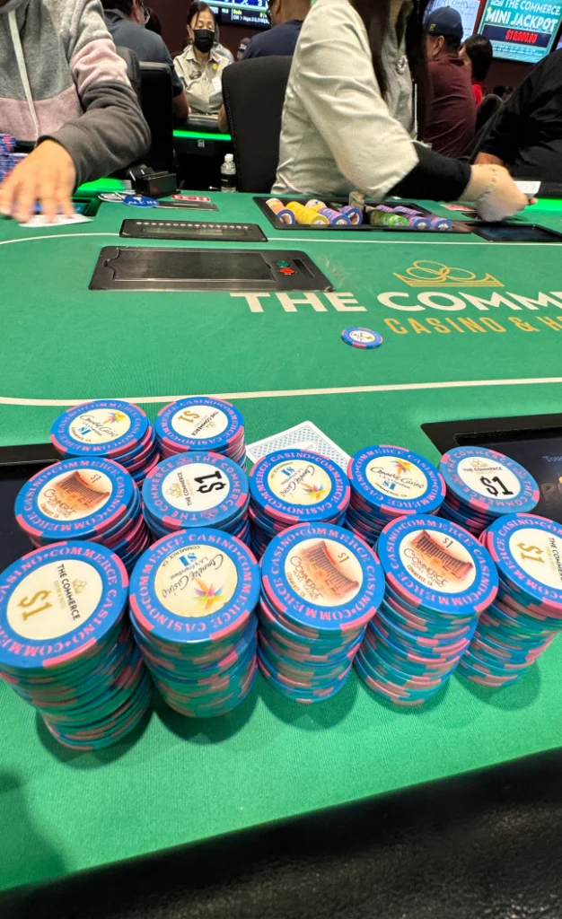 Commerce Casino - Los Angeles CA - Bud Jones Poker Chips. From what I have read a lot of players are not a fan of BJ, however I love the way they feel and the weight of them. By they way if anybody has BJ Chips for sale... DM me.