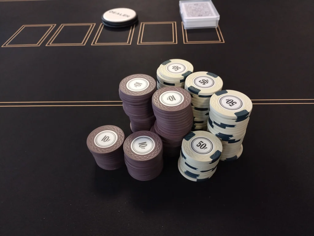In for £10, out for £40.90. My first big win in the game I host. Hit hands, didn't get coolered and a couple of bluffs sprinkled in.