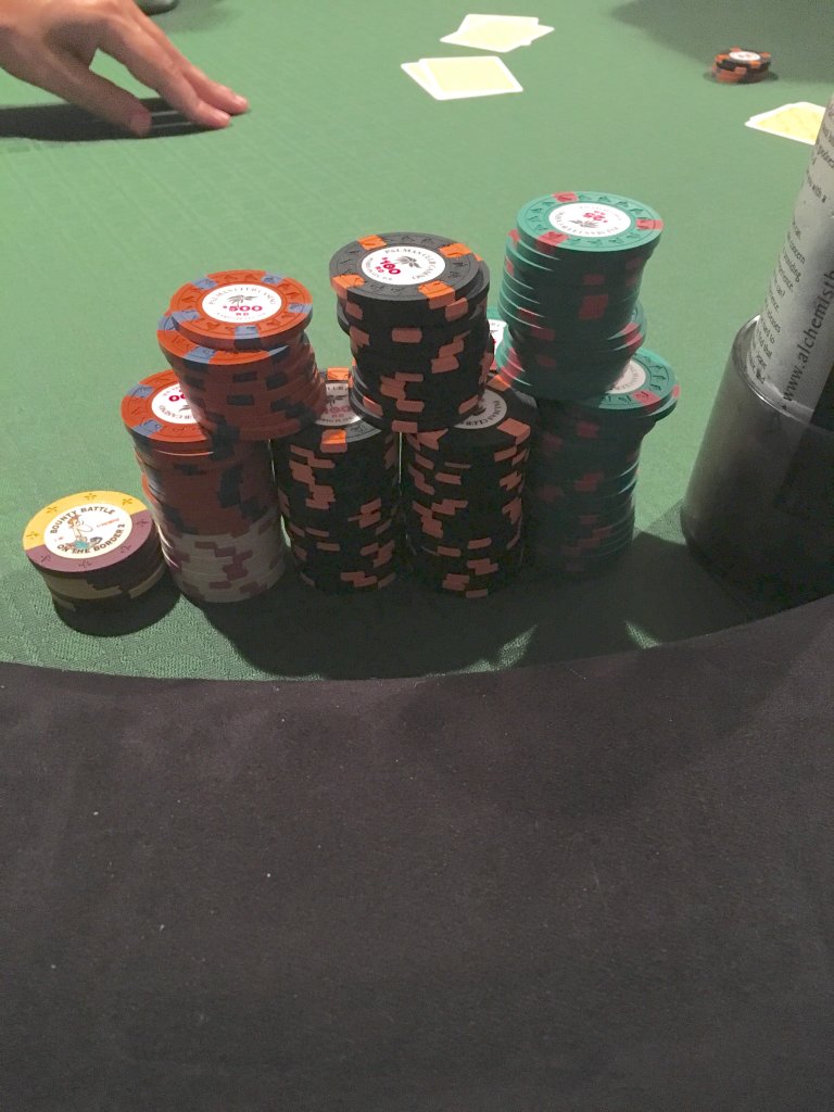 Into cash game for $400 plus $80 for tourney so $480 total. Cash out $580. $15 to host for brewskis and wheeeee.