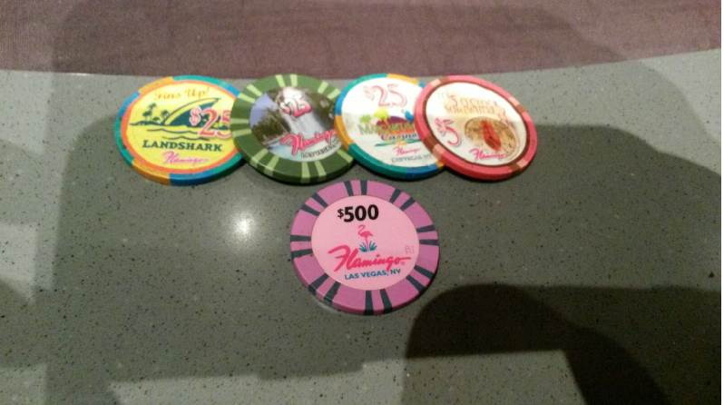 I saw the $5's with birds but not as pretty as the spotted $1's. Also how can the Flamingo go from having some nice looking chips to what they have now!?!? What a fugly $500 chip.Oops left off an "I". Last time I saw one for sale was on a cruise ship and it was $1600. Now I need to find the black pearl, did not know about that one.