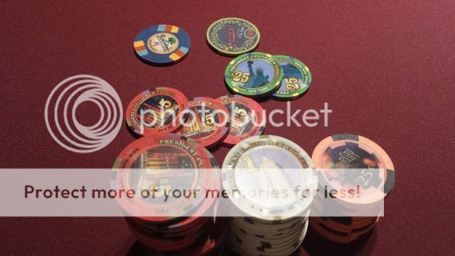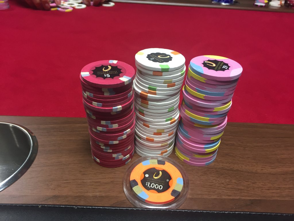 I was using a $25k chip as my card protector most of the night, I think it was to close to the front of my stack to be in the picture unfortunately. Every dealer and most players commented on it. They all asked if I forgot to redeem it once they realized it was from the Cleveland Horseshoe. Kinda surprised by the reaction to it still as I know several people here play at the JACK and use it, maybe I am the only one playing PLO though?