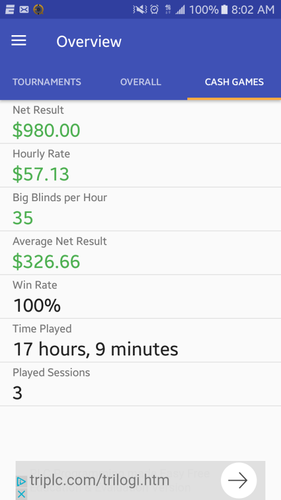 Only the second time playing 1/2 NLHE at a casino. First time in for $110 out for $330 I believe it was (last week). This week in for $120 out for $520!