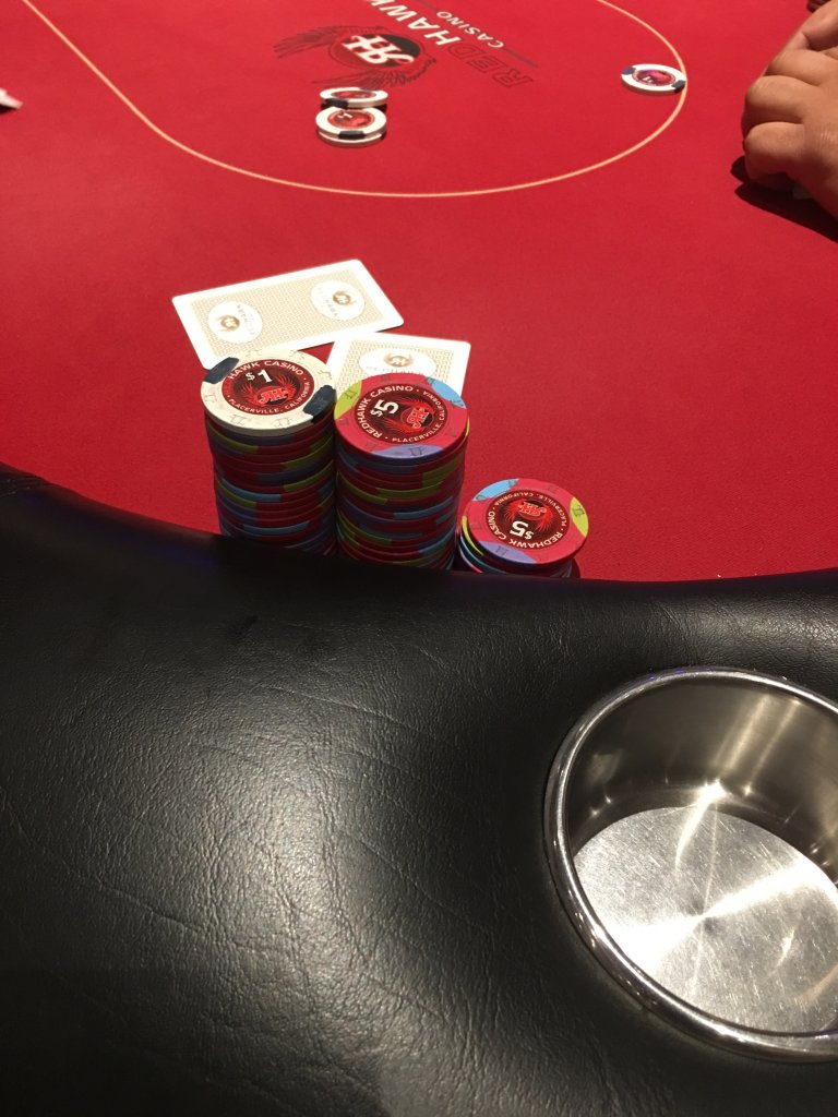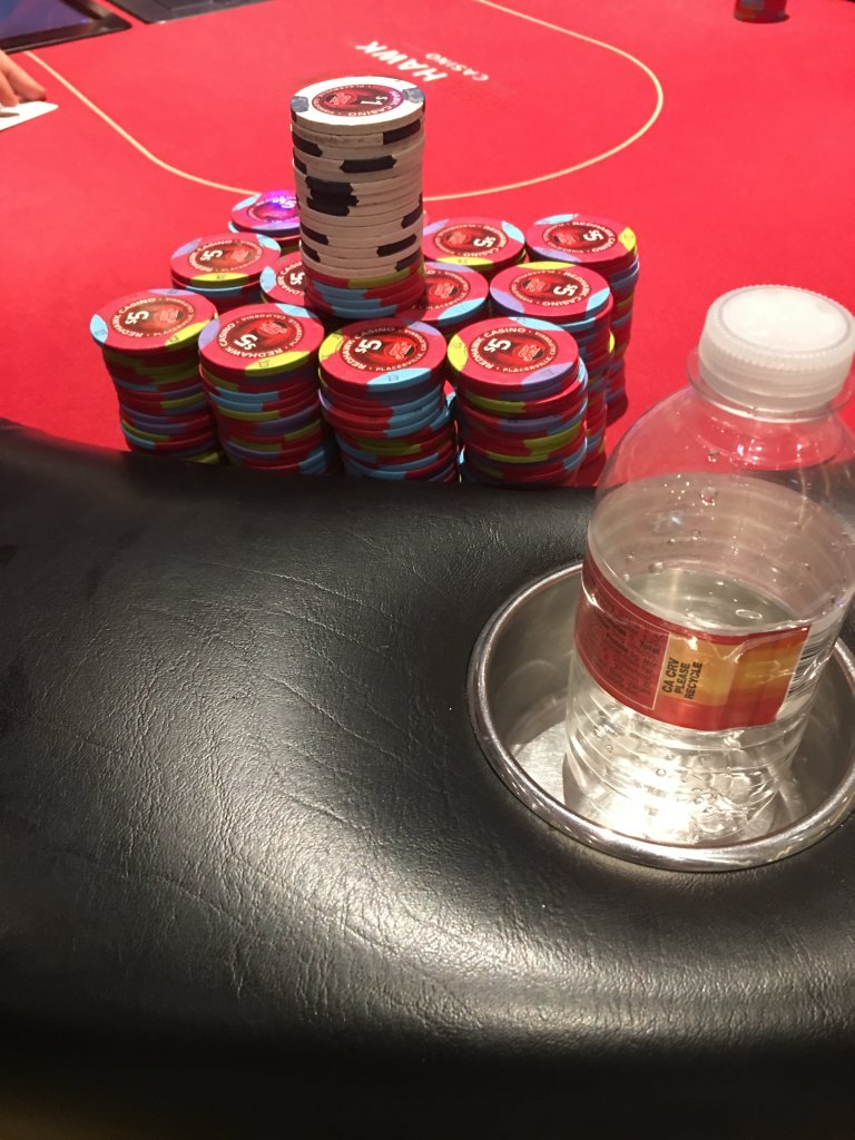 How do you have seven $100 plaques yet less than one barrel of 5's? Does not compute.