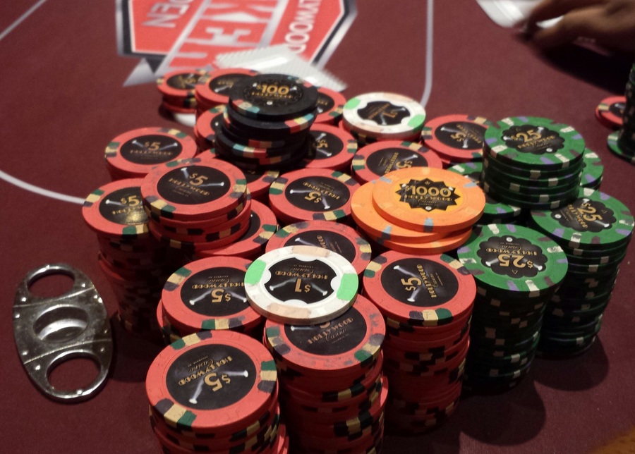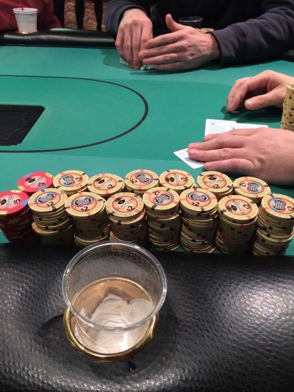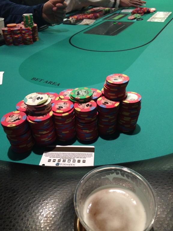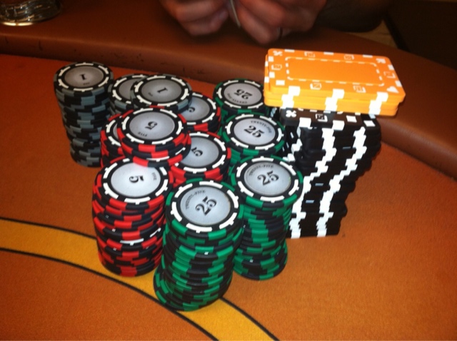 Here was my stack towards the end of the night. I cashed out with 202.50 from my 50 dollar buy in :)