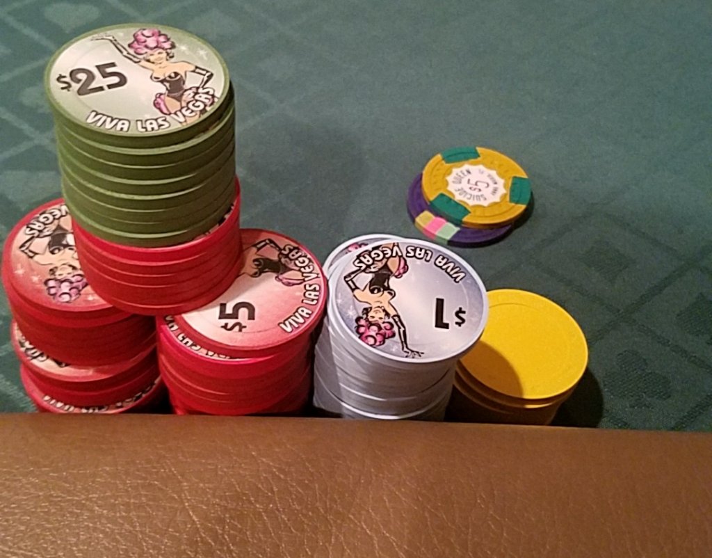 I can't say I enjoyed those chips very much on this particular night. Despite the lighter weight of older BCC's I do really dig these chips. I'm sure there are other people who have VLV BCC chips, but I never see them. I bought most of them for a song when Apache was closing them out via eBay, I want to say my average cost was like 20 cents per! The girl on the chip must be a red-headed stepchild.