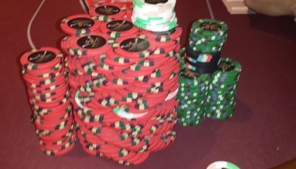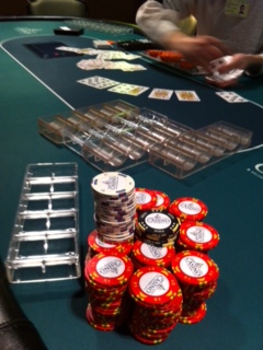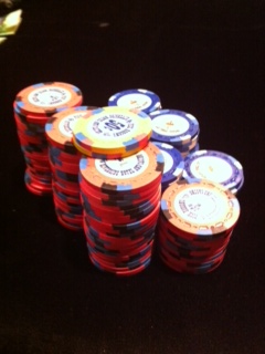 Not the largest stack I've ever had in front of me, but getting kinda up there. That 7k stack of XT's is ballah!!! Much nicer chips than the ceramics the Chunk (WI Dells) is using!