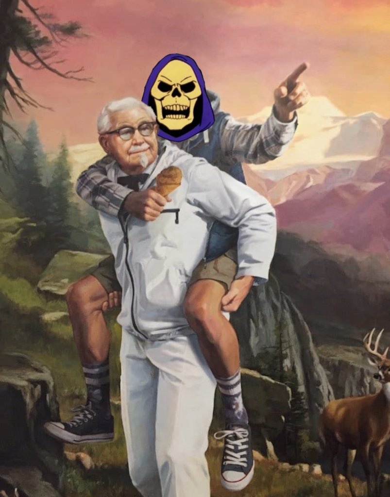 As I was walking along the beach with Colonel Sanders, across the dark sky flashed scenes from my life. For each scene, I noticed two sets of footprints in the sand, one belonging to me and one to Colonel Sanders.