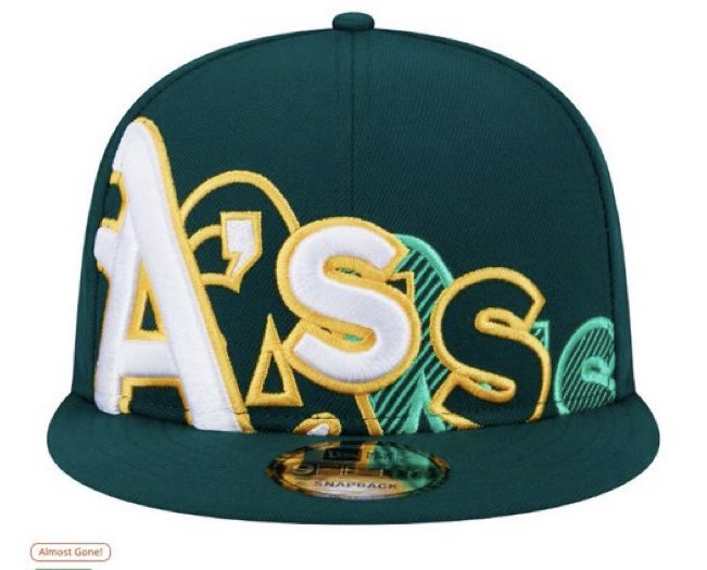 Need to have the backside of the A’s elephant on the backside of that hat.The A’ss hat will be a best seller. Book it