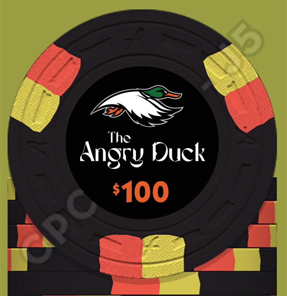 So what's your opinion? I'm fine with the white denomination. I think it shows up nice against the black background and I feel that with all the color in the duck and the yellowish text the white stands out. Nice. So I originally was going to have color denominations as you saw early on but I feel the white is just okay by me. And to be honest, I don't want to delay my chips anymore than necessary. Lol