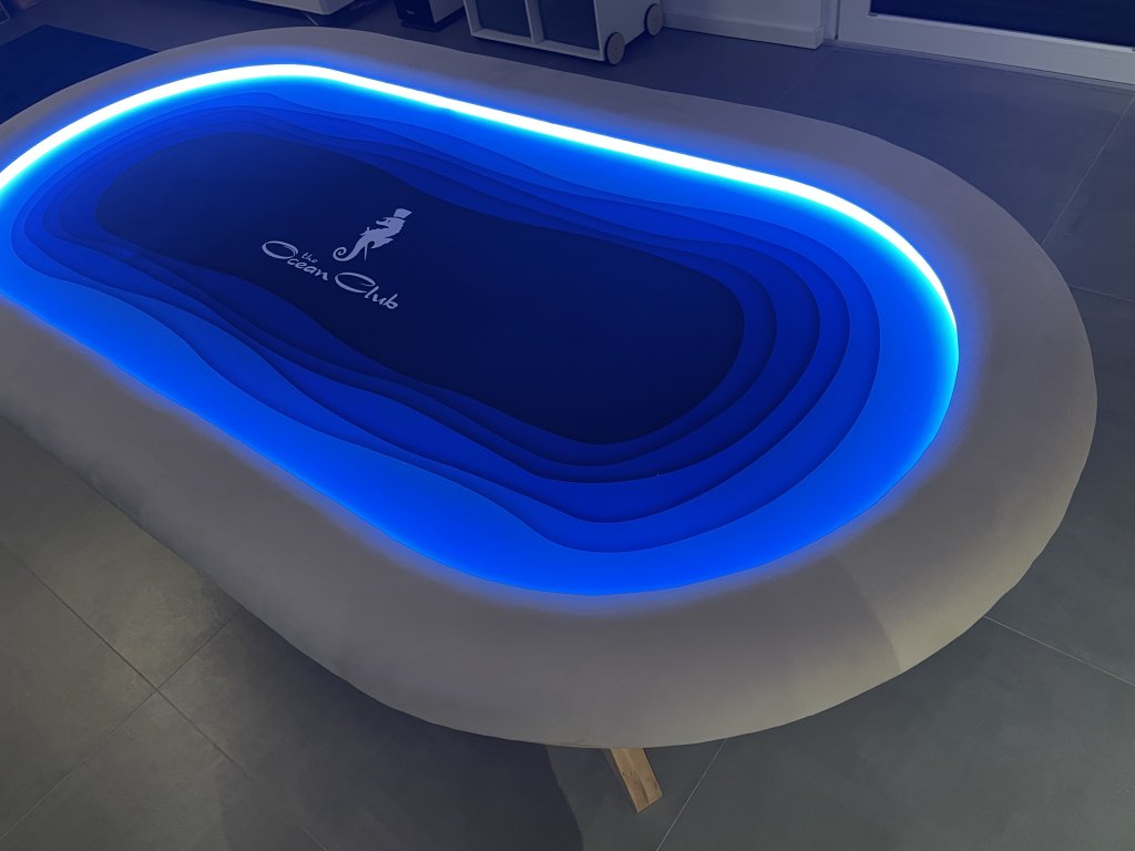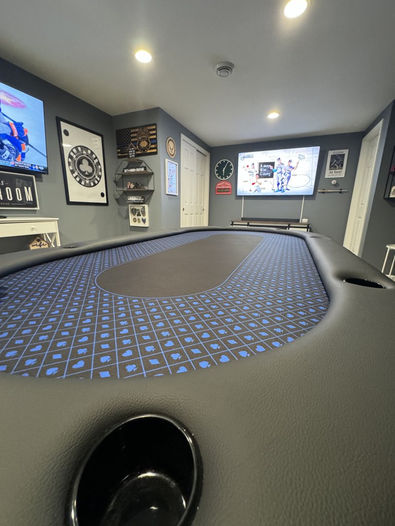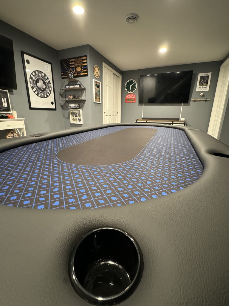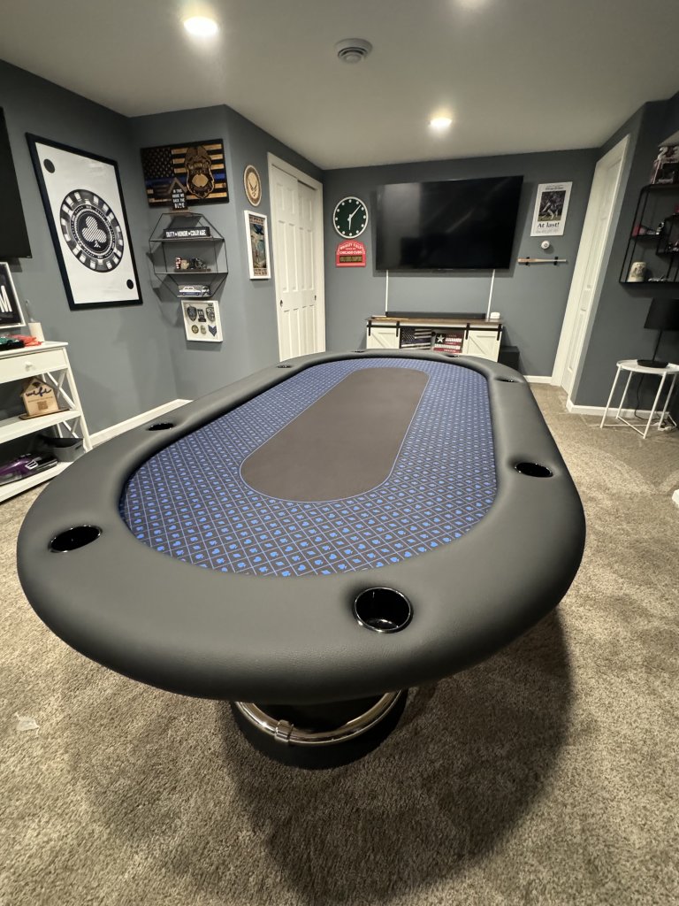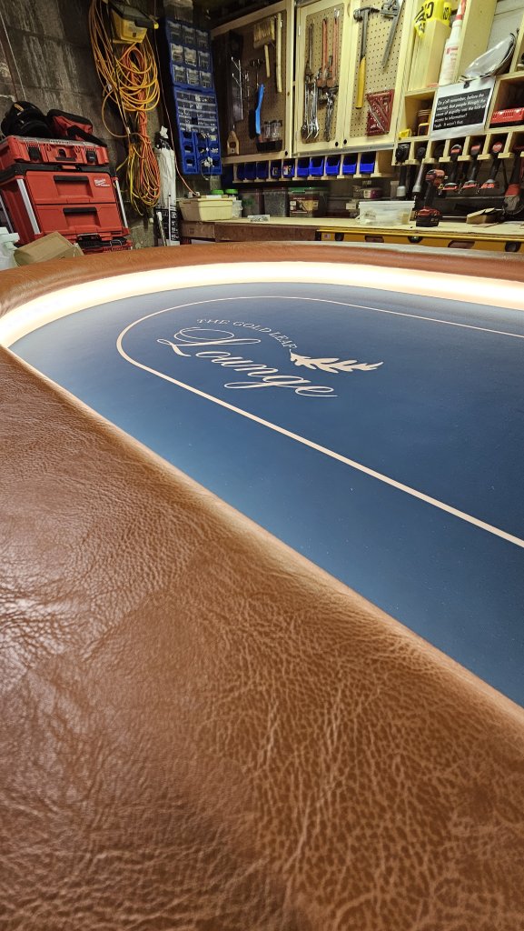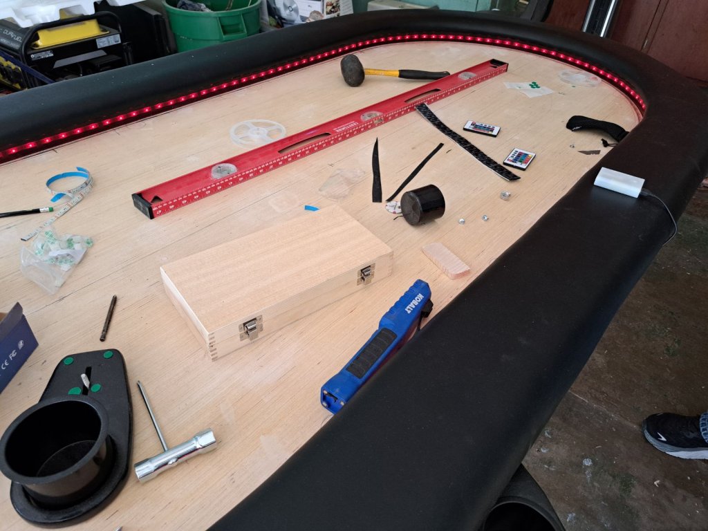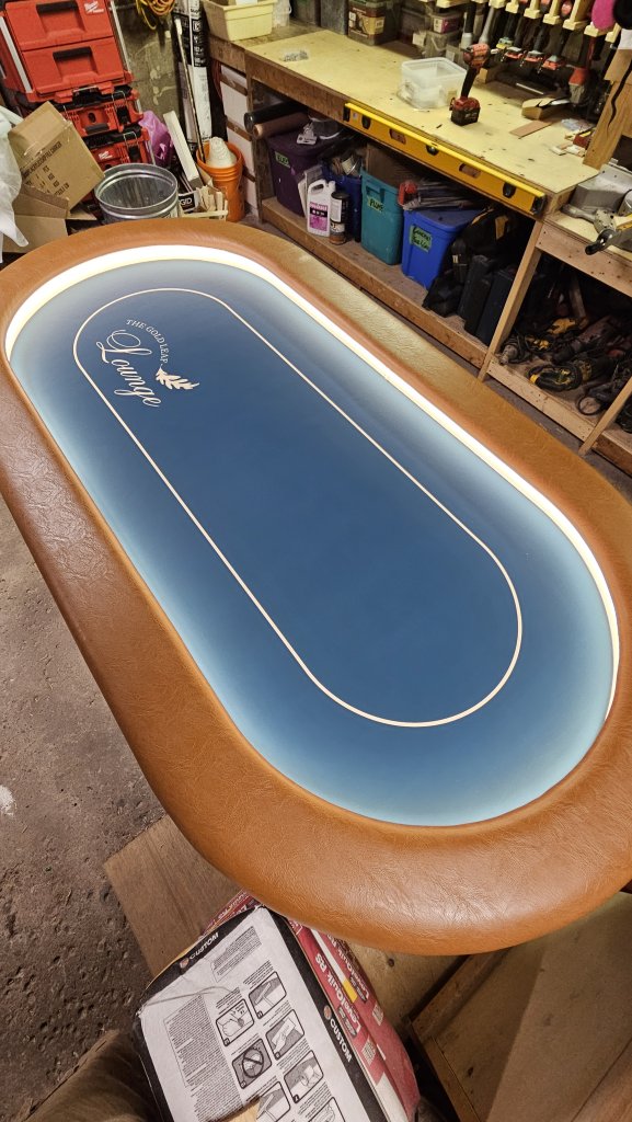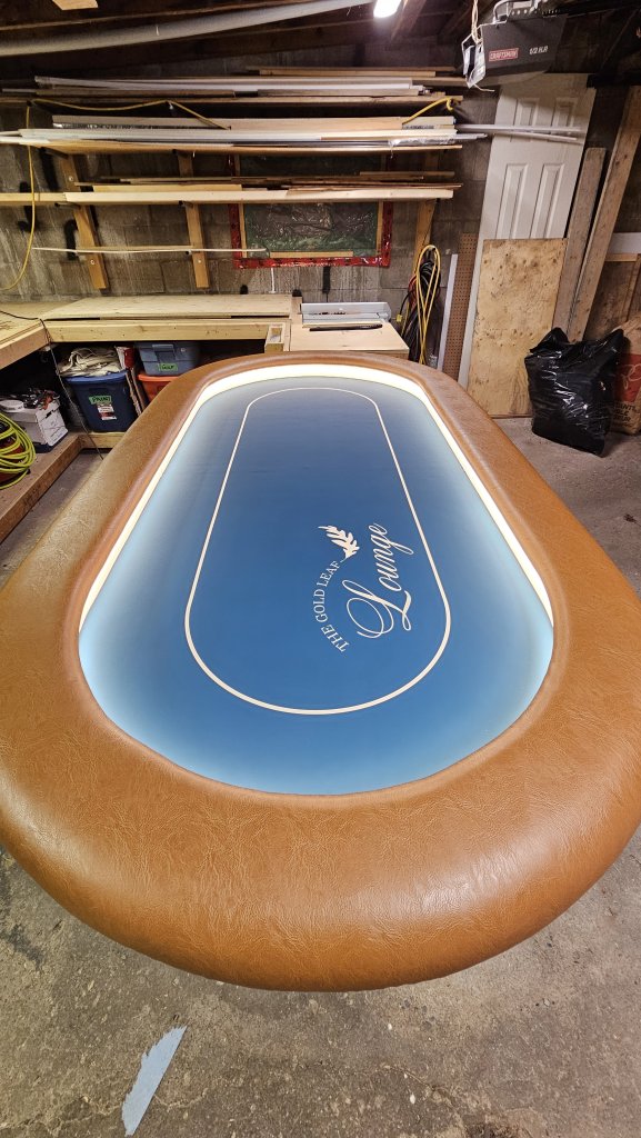 First build... Next build is in the design process. Dealer table with hidden cup holder that pull out. Give me a couple weeks and I'll post pictures. Recovering from shoulder surgery atm.