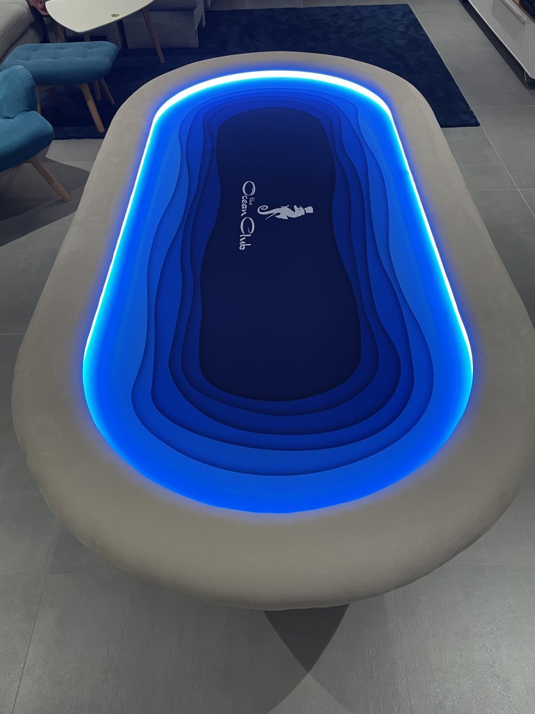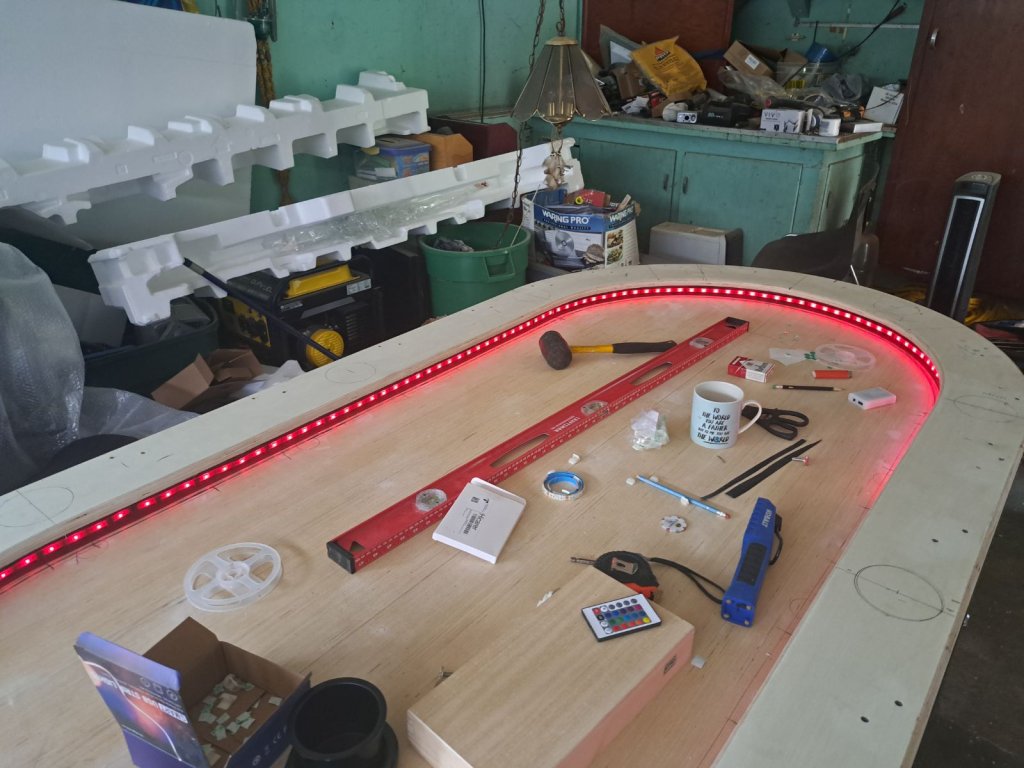 FINALLY! Just finished my raised rail table... semi-custom felt from @T_Chan & @Bloo_Design Looking for ideas for the led diffuser. I'm not sure if I like it plain white as is...maybe a custom vinyl sticker or something?