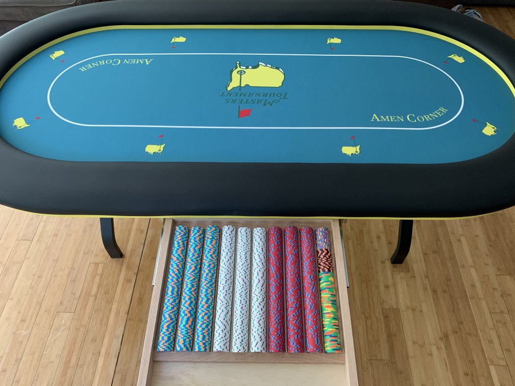 I acquired my table many years ago from a friend who had it in storage. It was built by another mutual friend in our poker circle from the early 2000s.