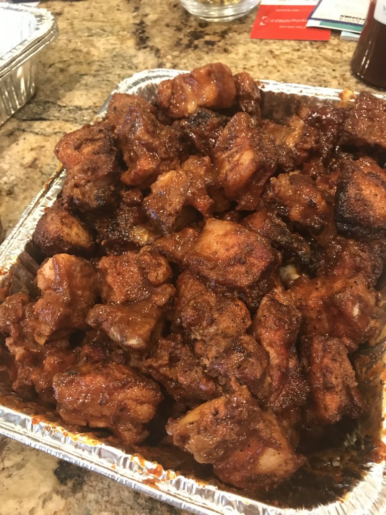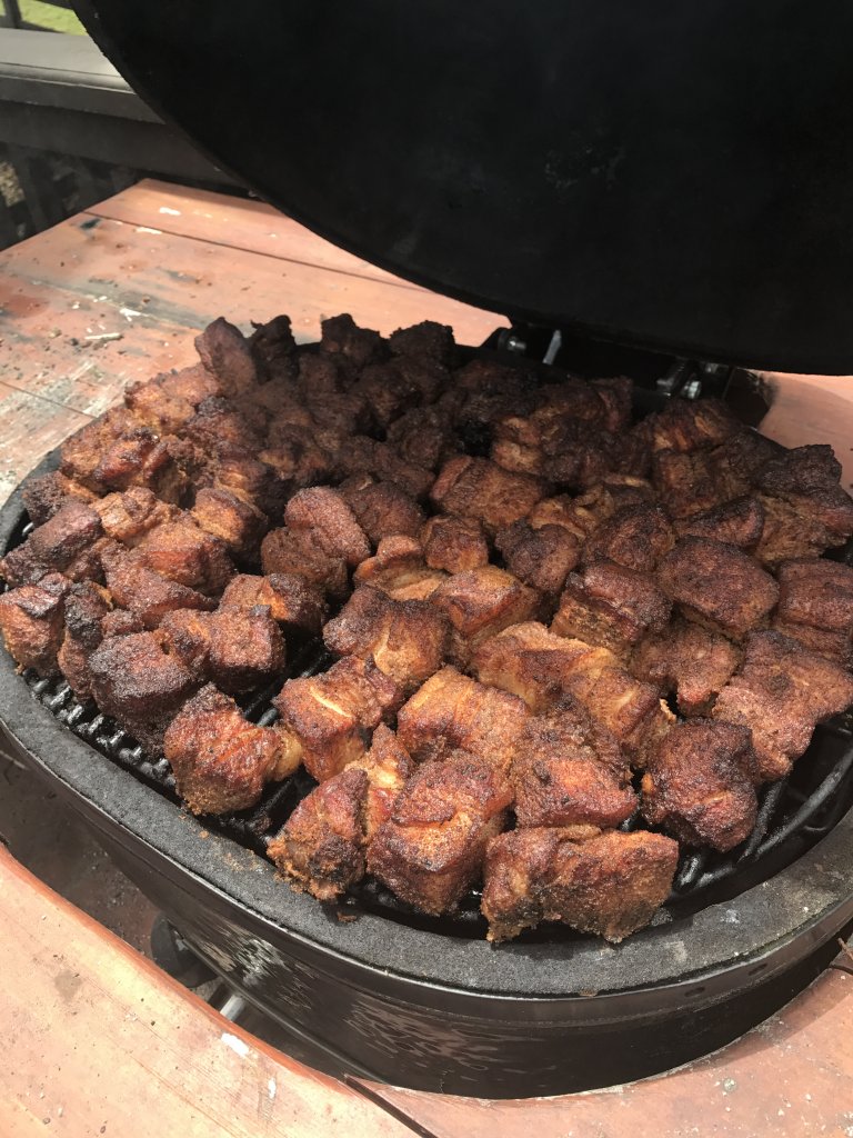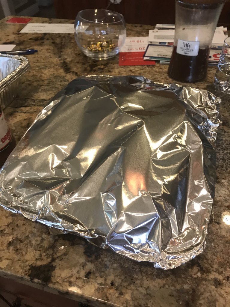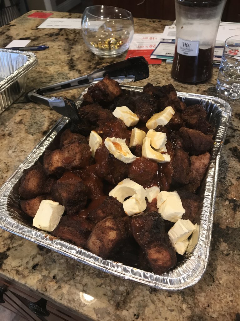 Belly pulled and added to pan with butter, sauce, and honey. Then covered and returned to smoker.