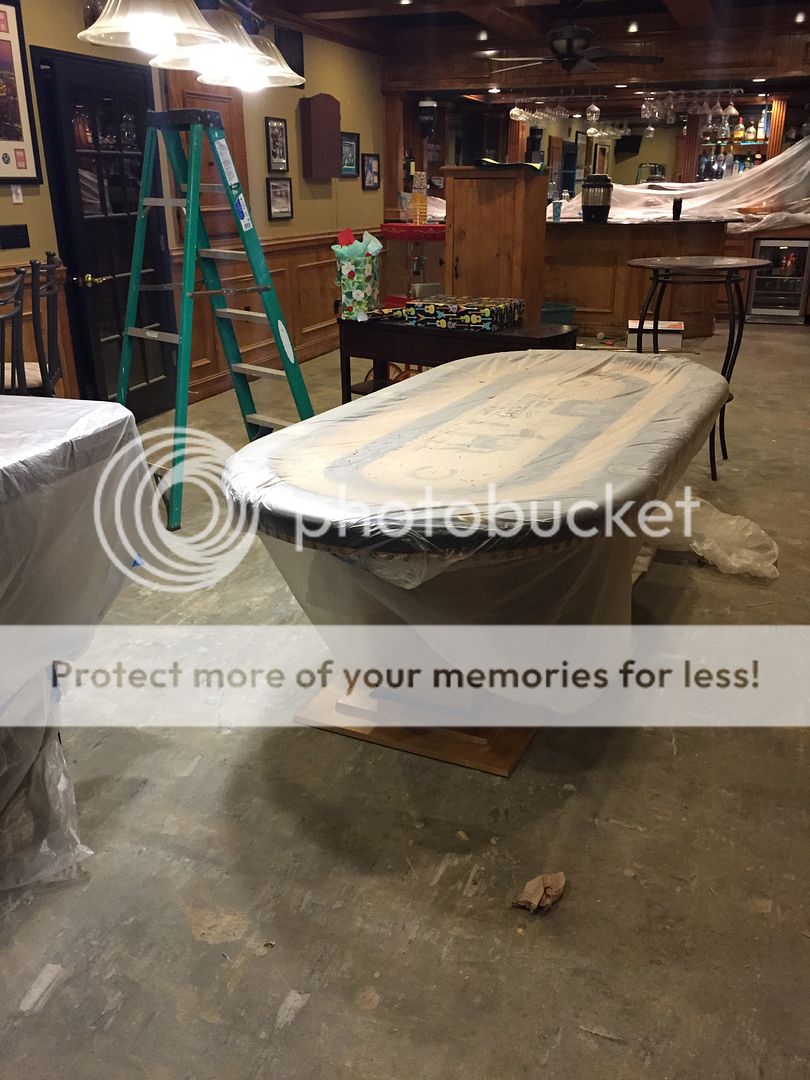 In late March we had an "incident". My wife put a plant in a basin sink in our mudroom upstairs (over the bar) to water it. She turned the water on, got distracted, and then we went grocery shopping. We get back to find water pooling in the garage, in the kitchen, and flowing down past the boards and cascading through the can lights over the bar portion of the bar. (Thank God it was where the booze is and not where the chips are.) The gyst of it is the wood floors upstairs are warped and the engineered hardwoods downstairs are peeling or in one spot behind the bar destroyed. Insurance (yay USAA!) came in and is replacing the entire first floors worth of flooring and also the hardwoods in the bar.