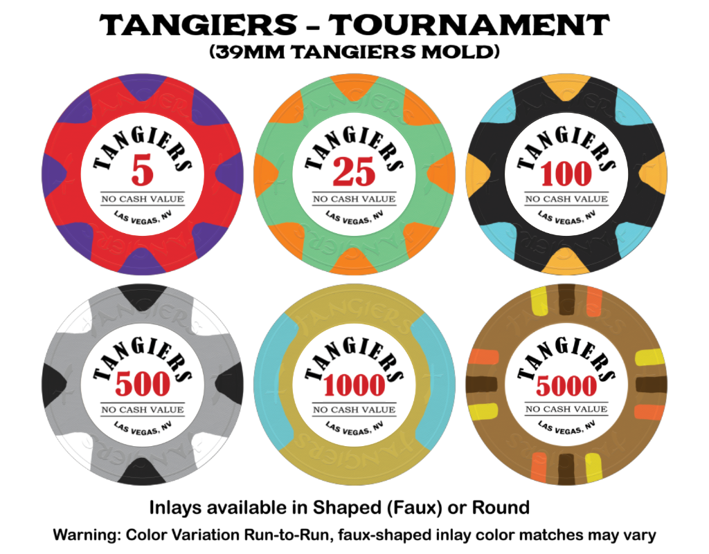 Can you mockup these, all with the round cash inlay art but with tournament denoms ?