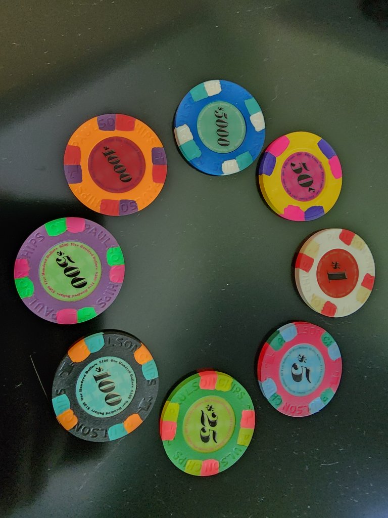 Relabel 2: Royal Princess 1000 -> Paulson Classic 50 cent (just got this back, we play $0.5/$1 at my house and these will be fire)