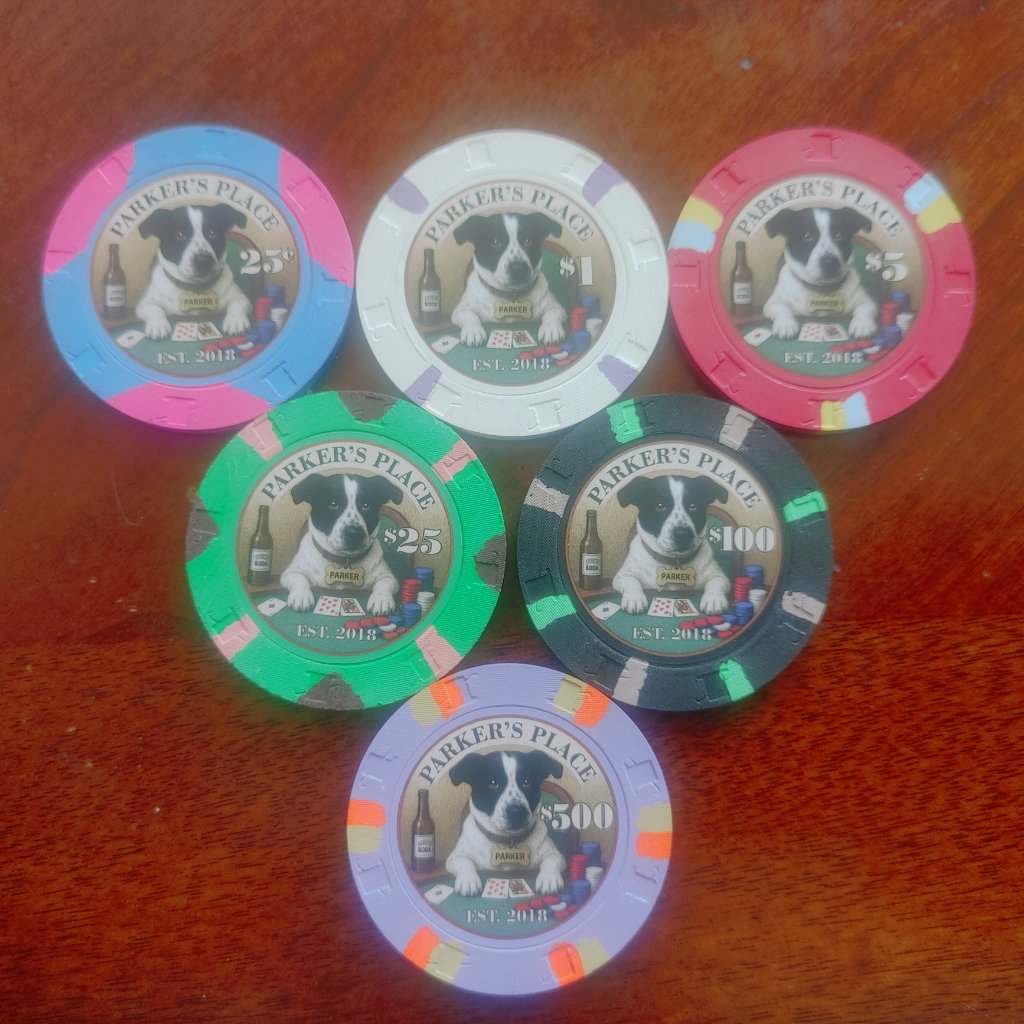 Really appreciate you guys making my set a reality. I bought these chips a while back with this vision in mind of a dedicated set to my dog Parker. Parker loves poker nights and is always excited to greet all the players as they arrive. Man these are awesome.