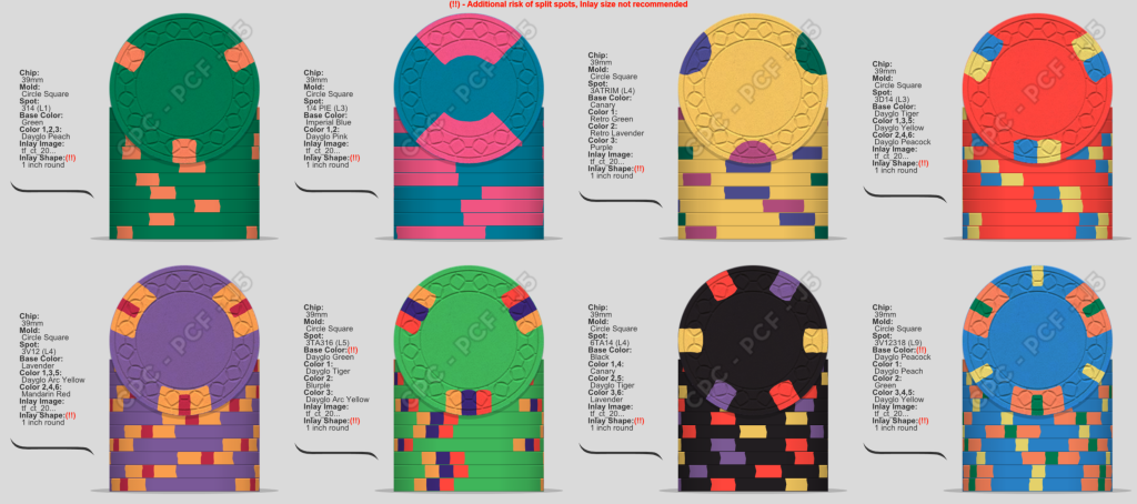 - There is a lot of yellow/peach/ark yellow. I don't think it will cause any major dirty stack issues due to the wide variation in base colors and the chips that will be on the table together. But feel free to comment.