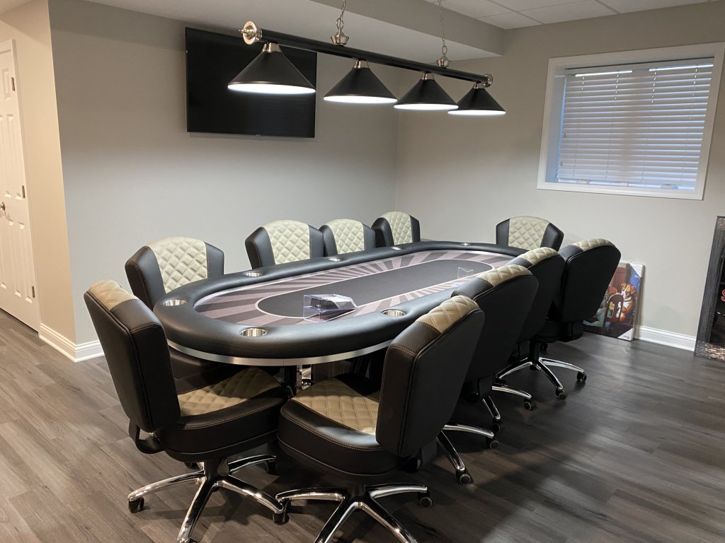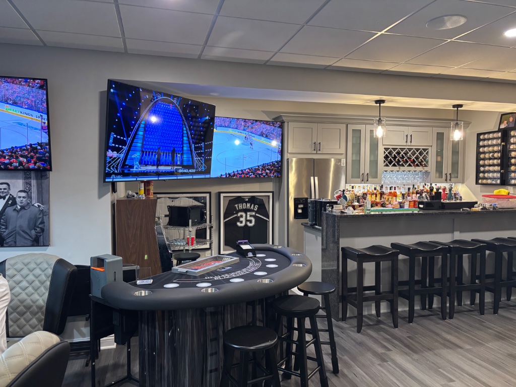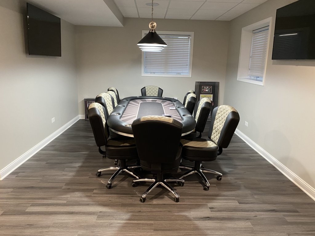 Very nice place to play!Here is an updated view. New light fixture. Completely finished basement project except for wall art.