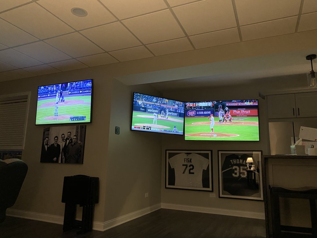 I’m still debating what to out under the other TV. Plan is to go with a 16x24 canvas to match the poker dogs. Either a classic picture of the gambling sign in downtown Vegas, an old school pic of The Stardust (love the mob history behind it and the connections to Chicago), or an old black and white of my grandfather and his brothers (real old school Italians, very classic look). I never met him, he died a year before I was born, but I think it would look really nice.