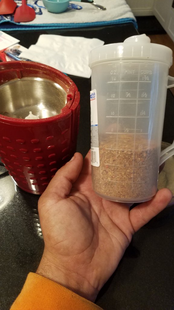 Anyways I lost my coffee grinder and had to order a new one. I thought maybe I would get a couple table spoons but was quite pleased with the yeild!
