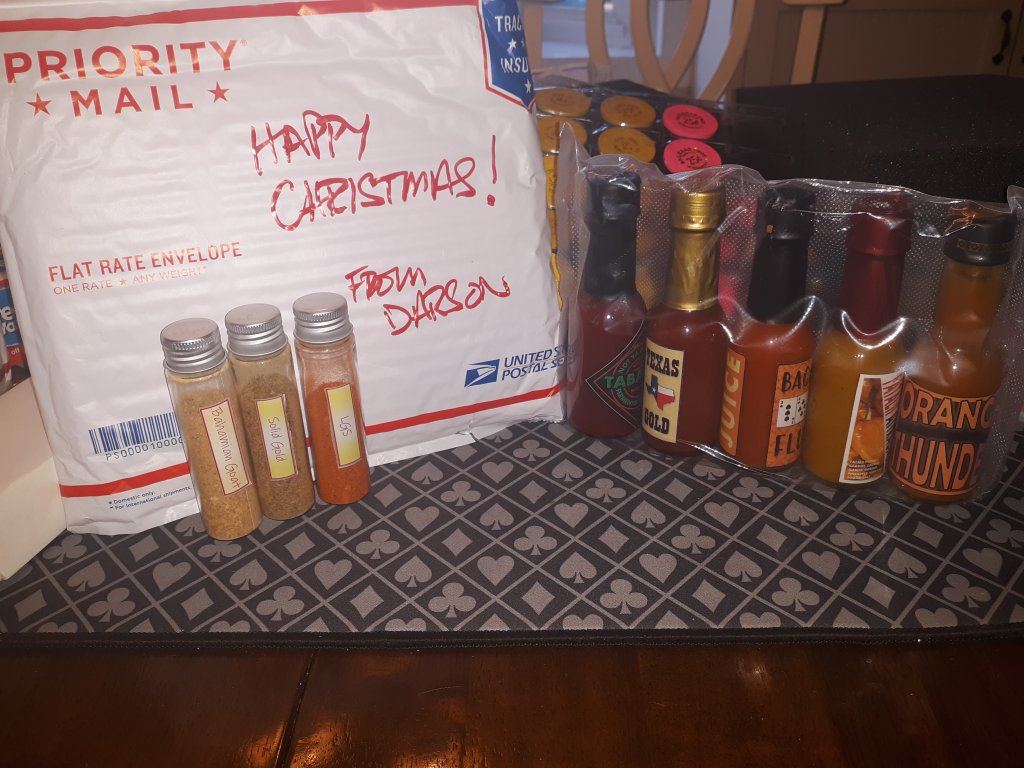 Finally got my Melinda's in the mail. I haven't tried the ketchup but the others are so good. The 2 to the right came from my friend that comes here every week from Baltimore. They're both very good local to the area which I like. My friend stationed in Alaska sent me the one on the far right which is an Alaskan kelp and piri piri sauce. I can't wait to try that one. He also sent some other Alaskan goodies like smoked salmon and reindeer jerky.