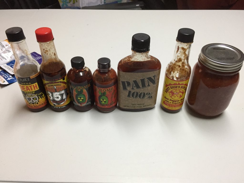 The Backdoor Flush/Hooker Juice is a mix of Dorset Naga and Scorpion peppers with onions, carrots, garlic, salt and vinegar.
