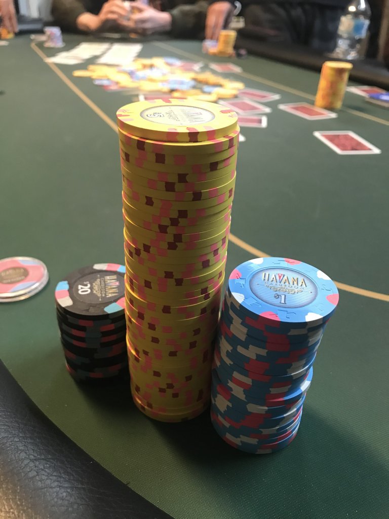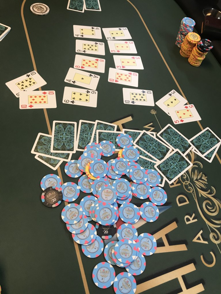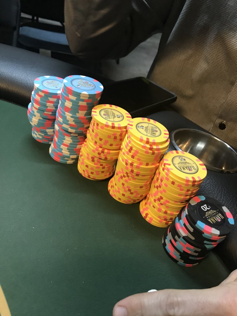 Nice cash game tonight at the Havana Cardroom. Two tables going. I sat at the kiddie table so they would have enough to start the game and never ended up moving over to the big kid table. In for $100; out for $341.