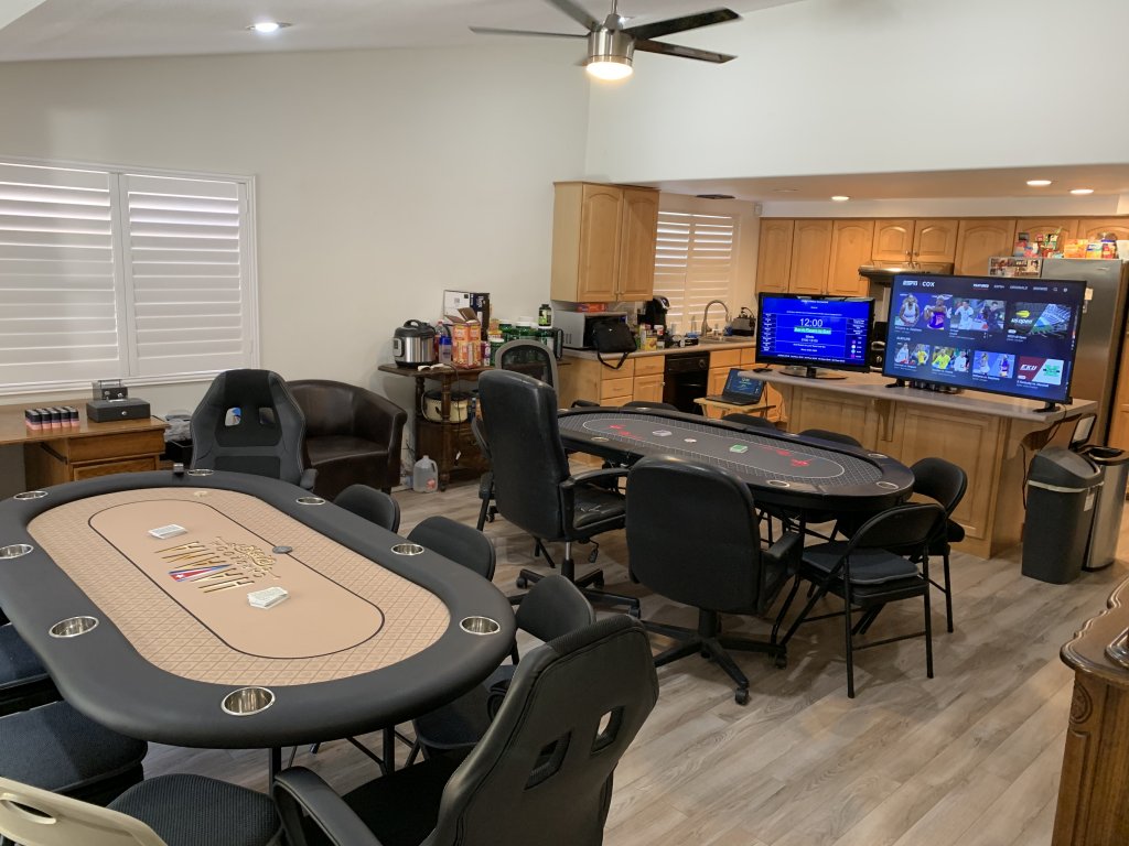 Alot of fun tonight, ran a 2 table tournament and 3 separate cash games after. 1 table in the garage and 2 in the house. Definitely alot of fun!