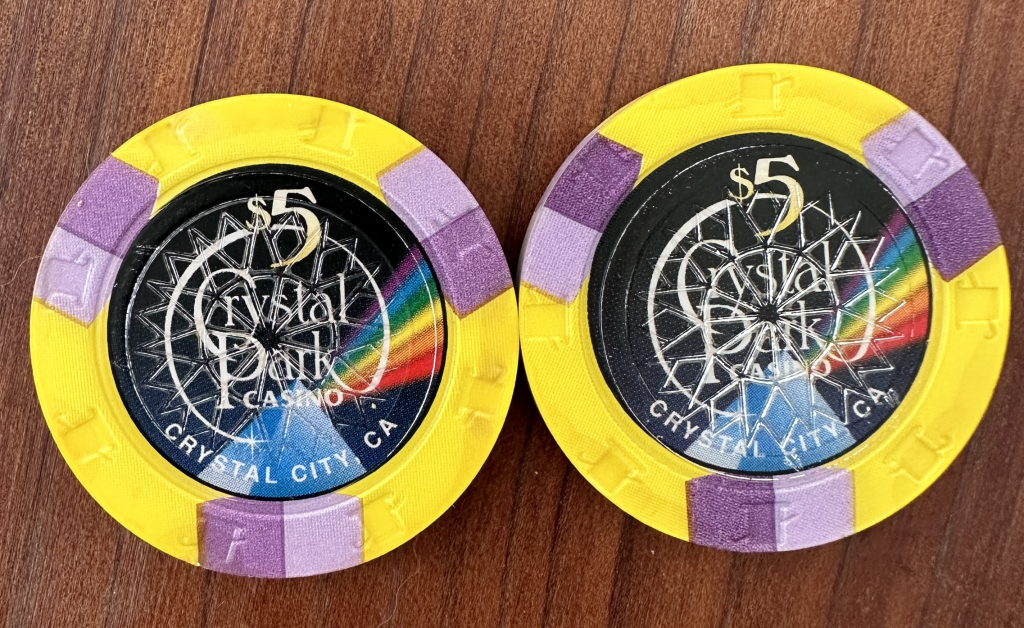So I already posted the first part of the story, where I got the refund for that warped turd-burger Tropicana-Ramada chip. From the same seller, though, this was another chip in the transaction. I'm very happy with it, though I wish it was just a *TAD* less worn. It will *barely* stand on its edge. It is an excellent addition to my Rat Rod set racks of $5s.