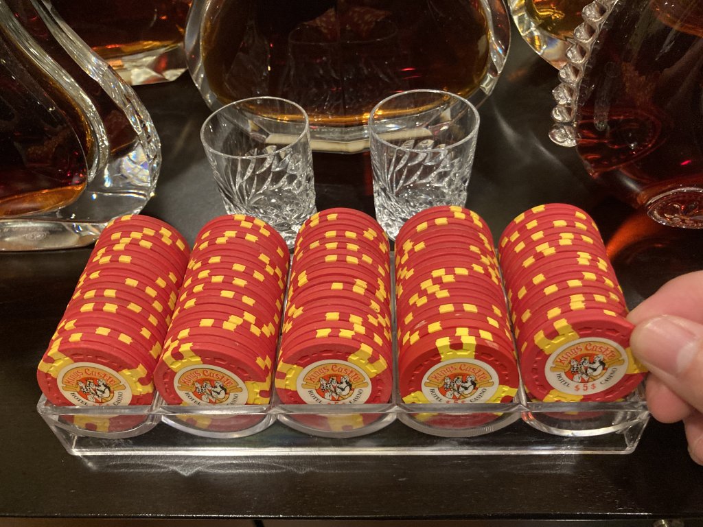 Most see the chips but I see the bottles of Paradis, Louis XIII Cognac plus a couple others in the back lol. Good stuff!