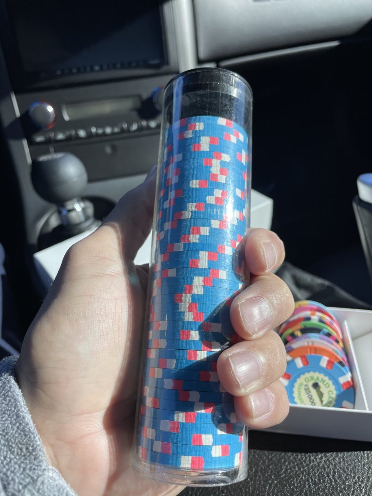 Capping off 2022 with a single chip gift from @EmptyPocs that arrived today to finish my full rack of used $5s. The mint ones are just too nice to play and @Okku would hate me for it.