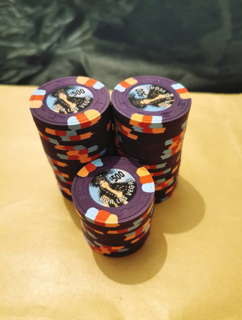 I see. Yeah the black and purple next to each other is a matter of preference. I often times think they are too close in color, but a lot of tournament sets have this same configuration with the black 100 and purple 500, so it does play well next to each other in a set.Yeah, only problem being that I will never have use for a $100 chip in my game. I'll give them a couple of days to settle in, then make a decision.