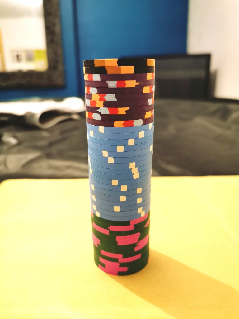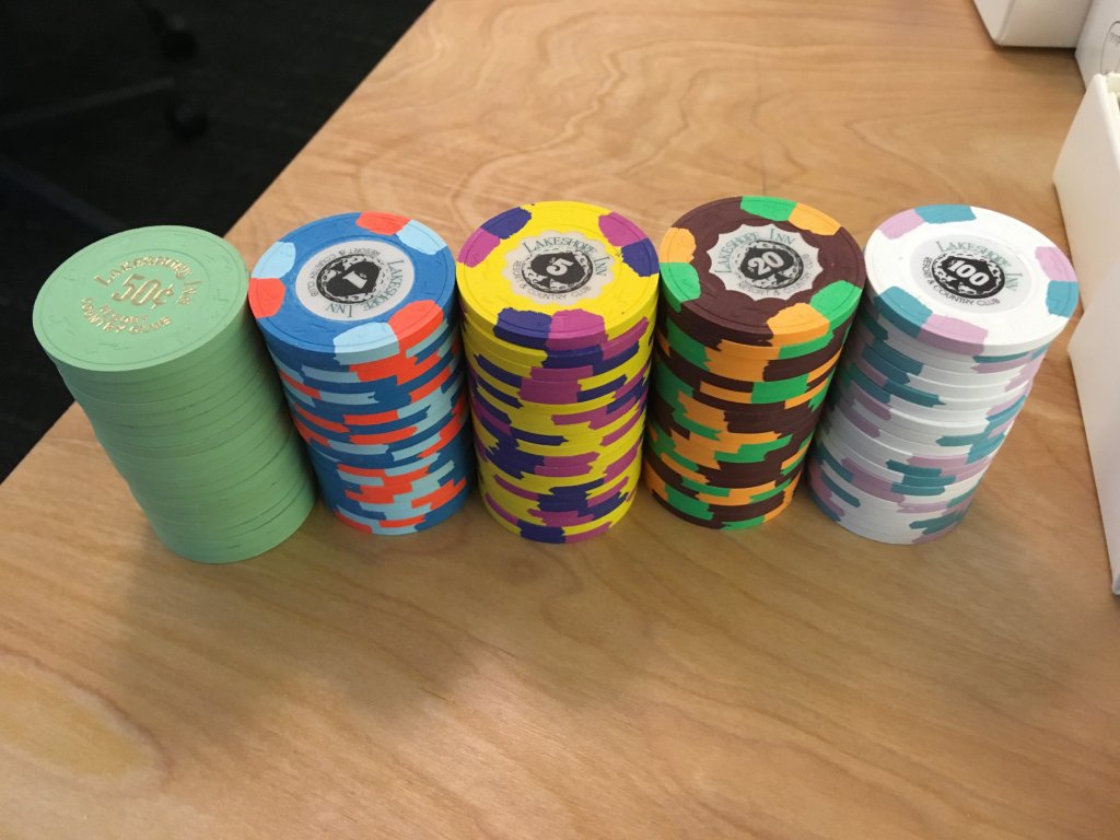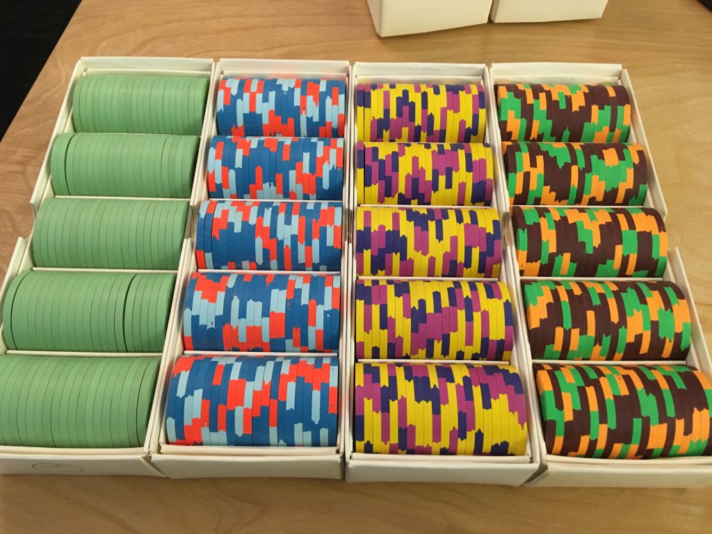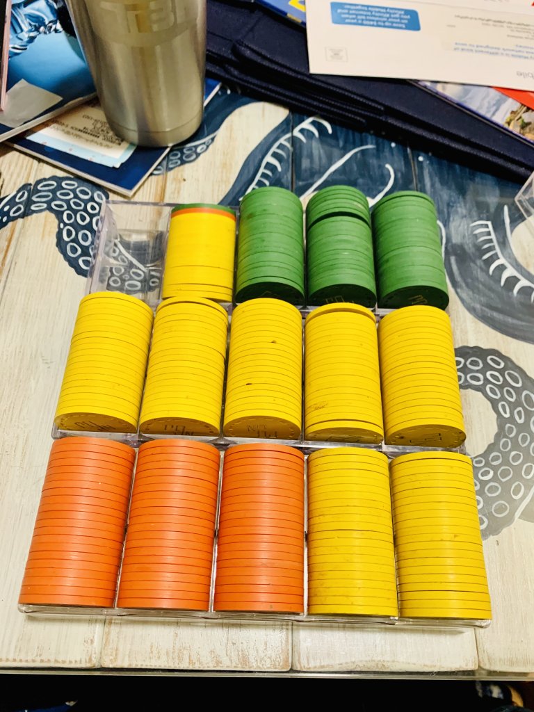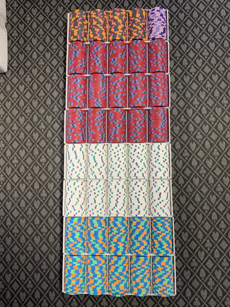 Yeah, only problem being that I will never have use for a $100 chip in my game. I'll give them a couple of days to settle in, then make a decision.I'd say keep the purple 5, bring in an orange 20, and then finish it with the black 100.