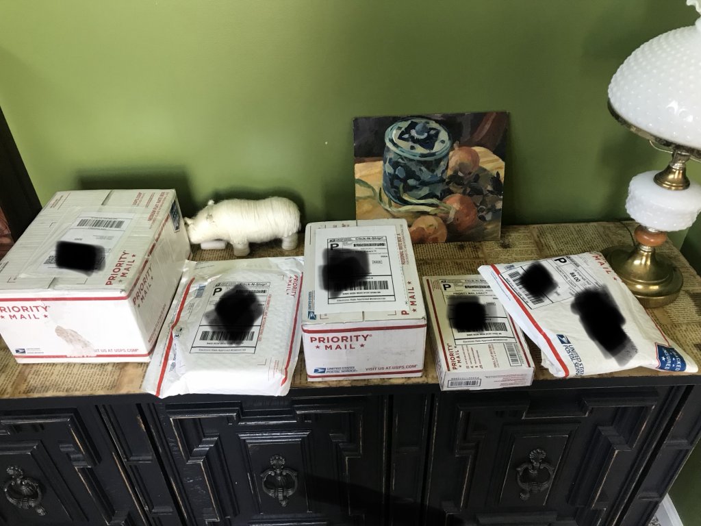 Not all mine, some to reship and I think maybe at least one for a neighbor. But big day!