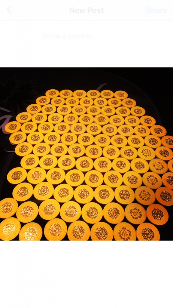 You really need to get the 2nd edition chips to go along with that Tropicana Button! I might know someone that could help you with those!