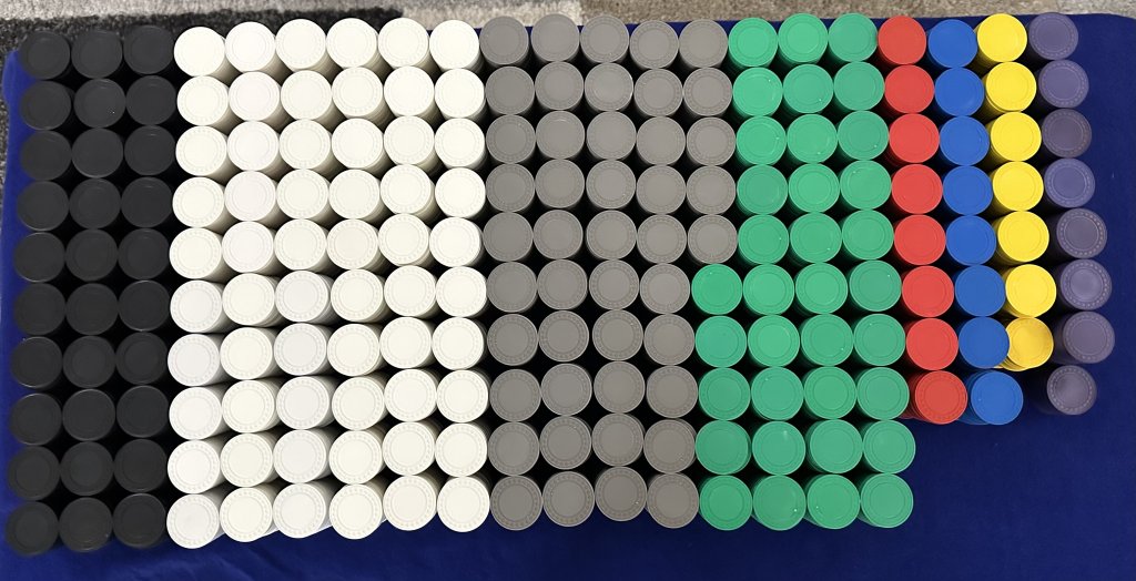 Not picured: roughly 250 blues, reds, and whites that were not close enough for color match.