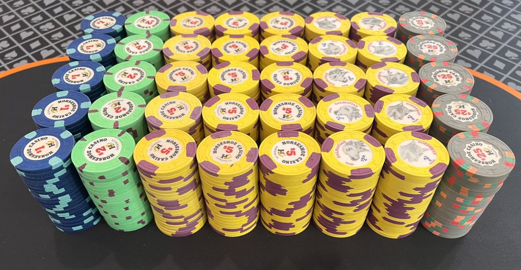 Speaking of Mel, she absolutely STUNNED me with a totally unexpected and incredibly generous gift: six—SIX—Riverside Reno $100s!!! Mel, I’m not sure I am worthy of such an amazing and insanely generous gift—thank you! I know how much those chips mean to you, and I’m humbled. You’re one of a kind.