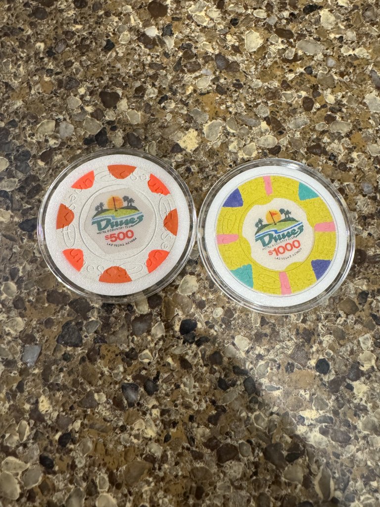 Originally was thinking peach would be the perfect fit to bridge the Cali chips with Vegas colors gap, but the arc yellow opportunity came up first and I do slightly prefer it overall because, well, it's arc yellow. Canary/yellow is honestly fantastic too and plays really well the couple times we've played the set with them.