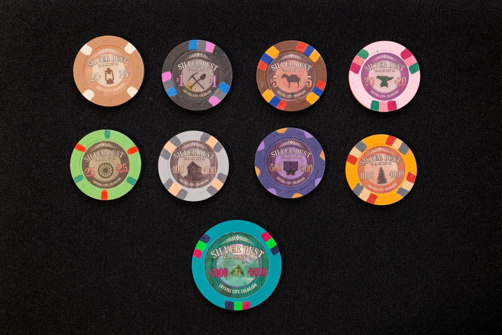 In addition, I received a Silver Dust sample set. This set is one of the few custom sets to have a 50mm no mold chip. The set also did a great job giving each denomination its own artwork: