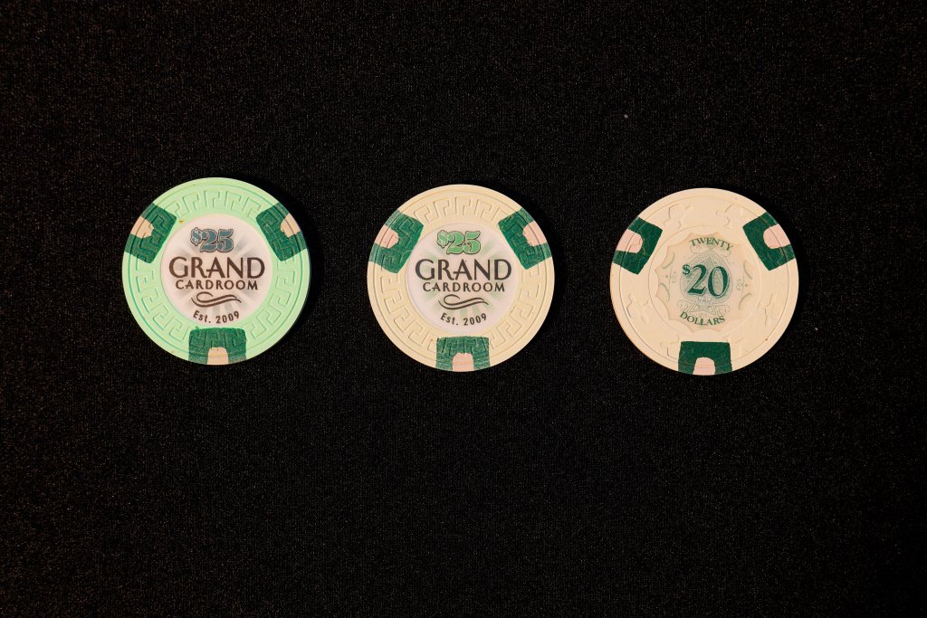 The error $25 is a curious chip. The BCC MGK CGR chips matched the color of the printed denomination to an edgespot in every example I have, except for the error $25. In the error $25, it's lighter than the green edgespot that it seeks to match in the non-error $25. Also, if that error $25 looks familiar to you, you’re not alone: