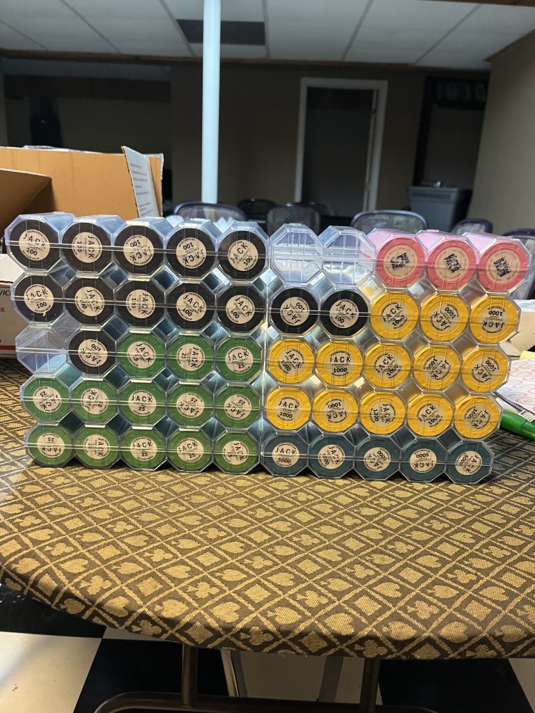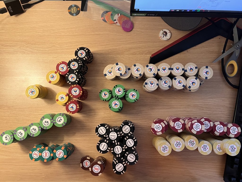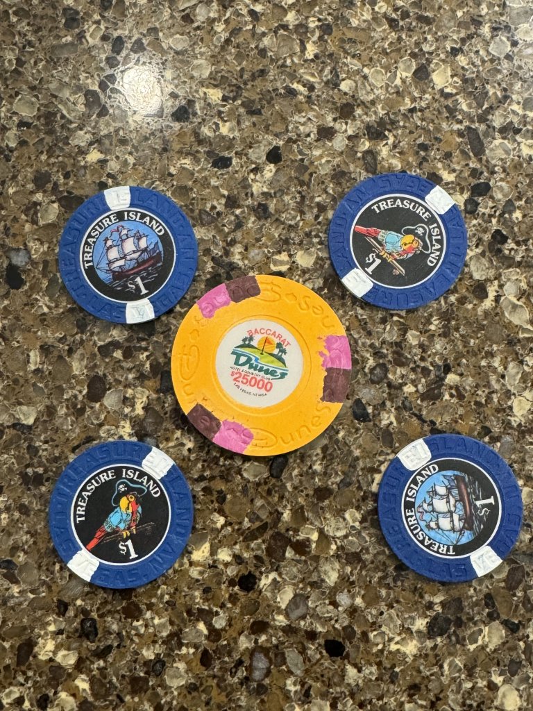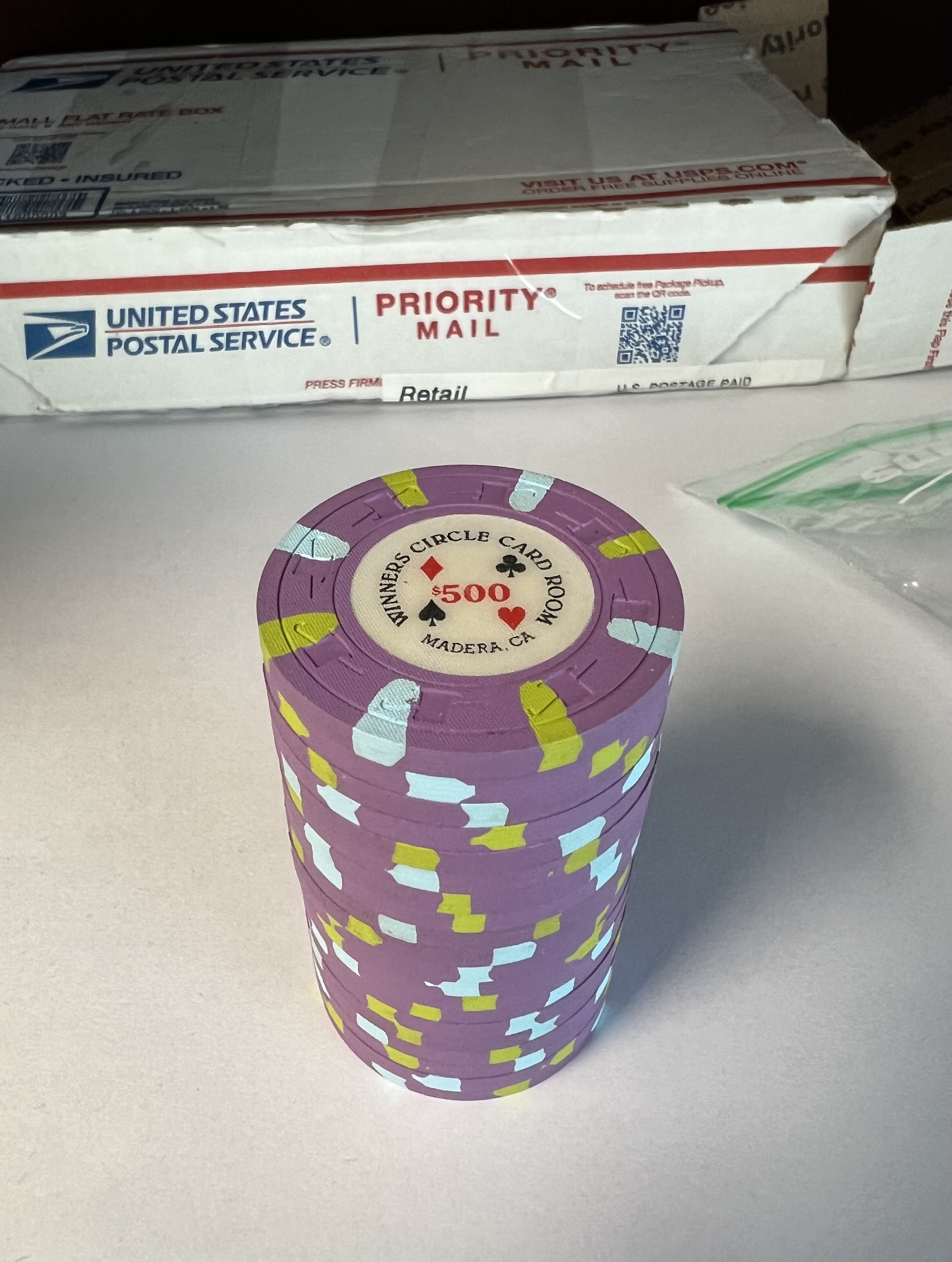 The Circus Circus is less bad than I was expecting as the surface feels like it might actually have some grip, but it's still a poor replacement for the older Paulson chips. (It's also a bit larger in diameter as I noticed as I was racking it up with the rest of the ones I have.)