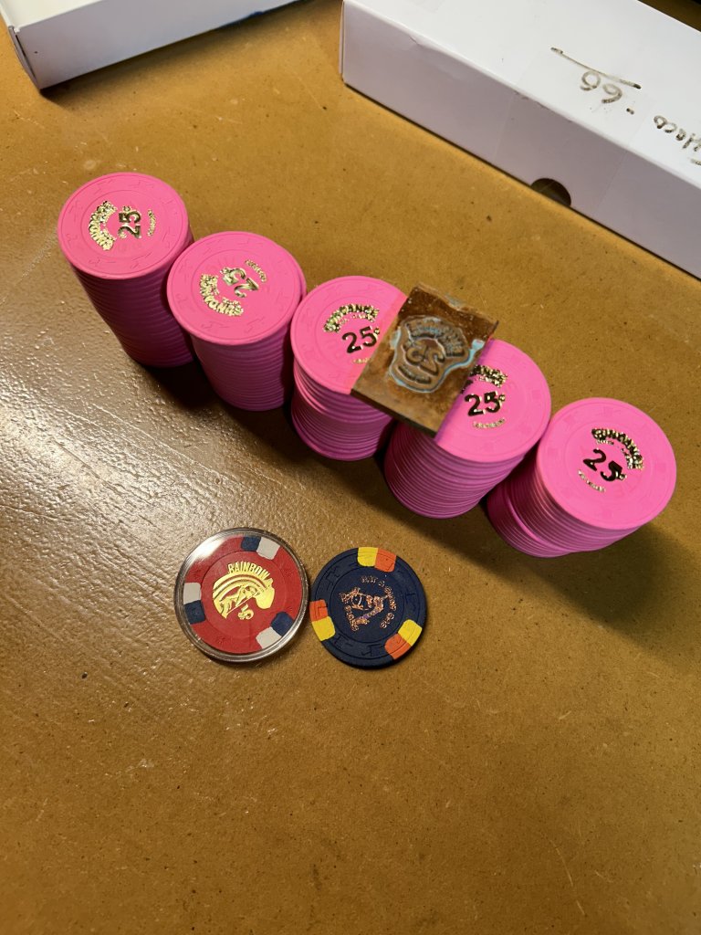 The hub mold is from the Brown Palace in downtown Denver. A cool old-school hotel from the very late 1800s. The hotel is still there but the games this chip were used in are long gone.
