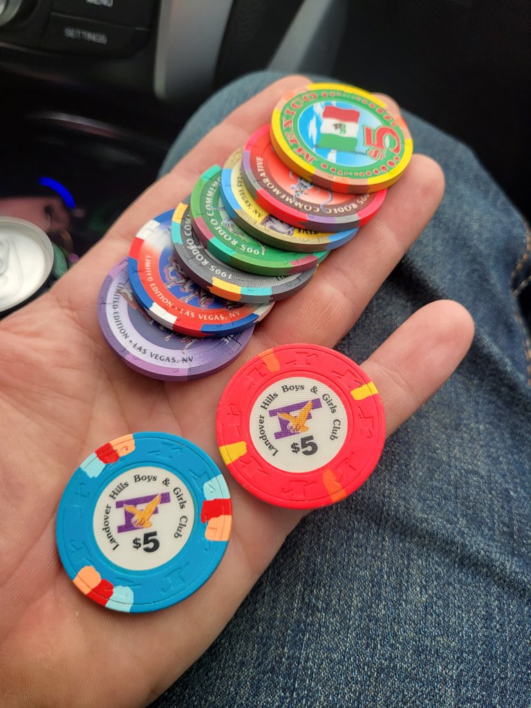 No idea why 2 different $5s or why the rest if the chips were junk plastic... but happy to have found these!